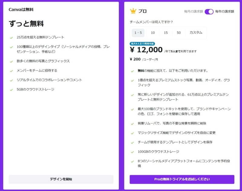 Canvaは無料版でもほとんどの機能が使用可能ですが、断然、有料版の「Canva Pro」をおすすめします。